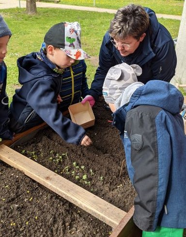 Wir bepflanzen unsere neuen Hochbeete - Projekt "Erde" der Gruppe 9
