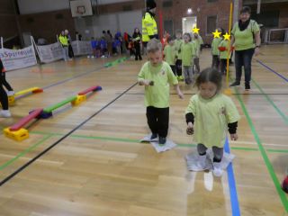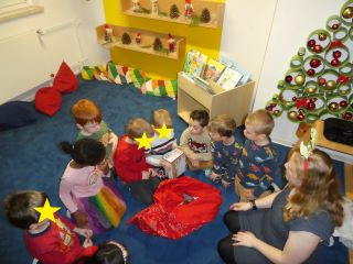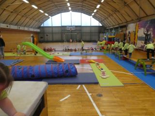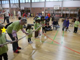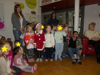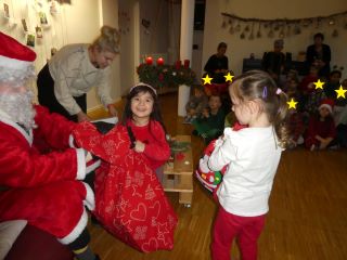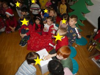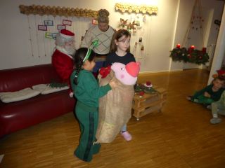 Den Anfang machten an diesem Tag die Krippenkinder ab zwei Jahren. In der Gruppe danach folgten die jüngsten Kindergartenkinder. Nach einer musikalischen Erwärmung konnten alle Kinder gemeinsam Weihnachtsbäume schmücken. Daraufhin meisterten sie einen schwierigen Parcours und wurden mit dem Besuch des Nikolaus´ überrascht. Dieser brachte als Belohnung Süßigkeiten für die sportlichen Kinder mit.