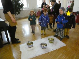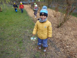 Obwohl heute auch Frühlingsanfang ist, hat uns Petrus kein Glück gebracht. Wir haben im Atrium gemeinsam am Lehmofen unser Osterlied "Stups, der kleine Osterhase" gesungen und unser Osterbrot gebrochen.