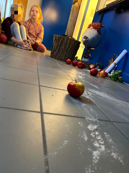 Heute hat unser Wichtel Nils ein kleines Apfelchaos hinterlassen.