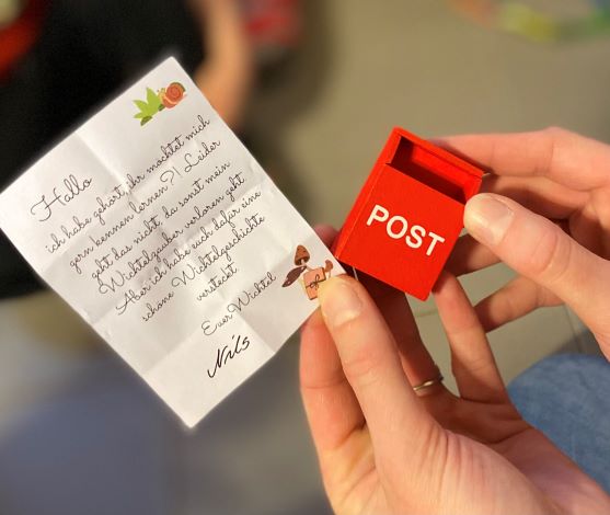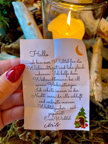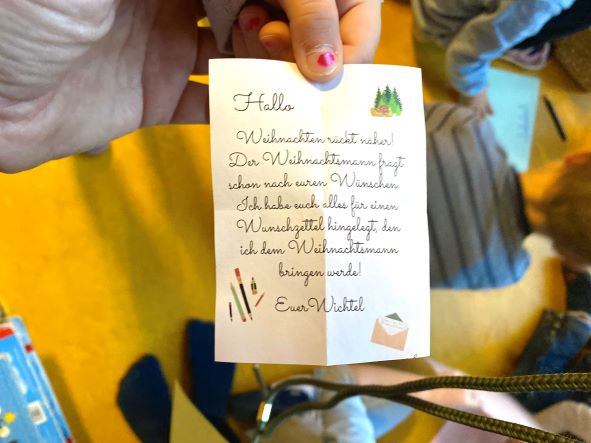 Heute hat Nils eine Wichtelgeschichte versteckt. Nach kurzem Suchen, haben wir diese entdeckt und anschließend gelesen.