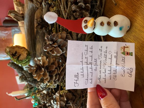 Heute hat Nils uns einen Schneemann gebaut. Um auch ihm etwas Gutes zu tun, haben wir ihm seinen Vorgarten noch schöner gemacht!