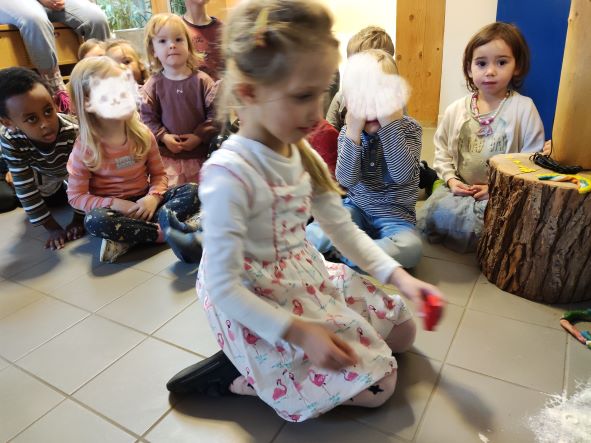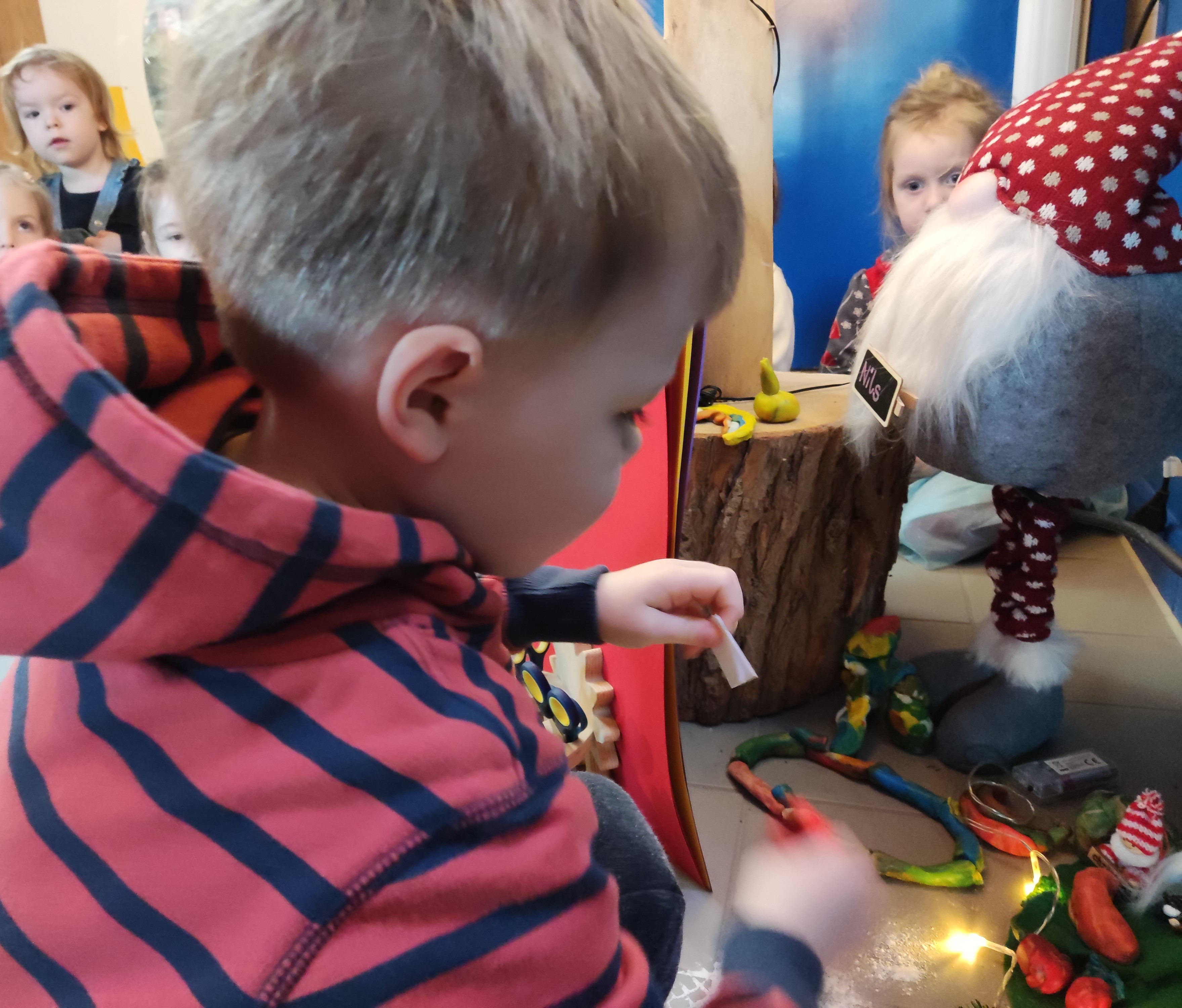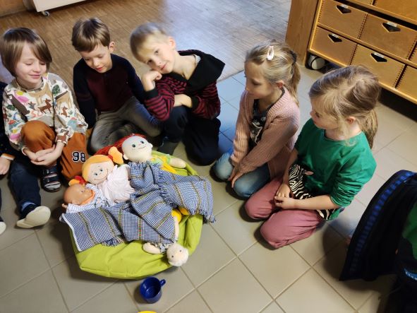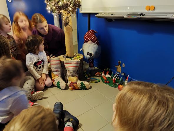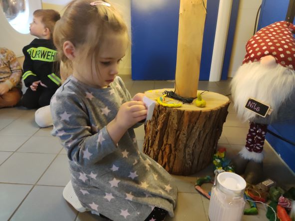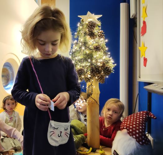 Am heutigen Tag sollten wir Nils ein Lied singen. Erst haben wir ein Wichtellied gesungen und dann Oh Tannenbaum.