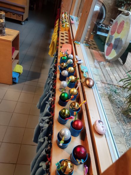 Diesmal hat sich unser Nils selbst übertroffen! Als wir in die Kita kamen hatte er in alle Zahnputzbechern Baumkugeln versteckt.