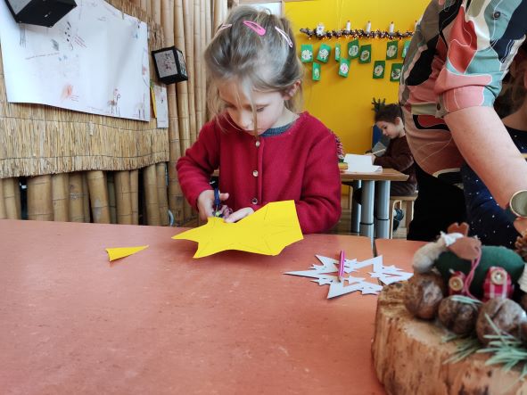 Nils mag Sterne so gern, dass er uns heute gebeten hat ihm welche zu basteln. Fleißig machen wir uns ans Werk!