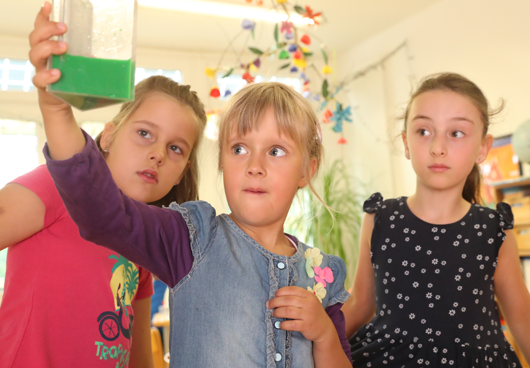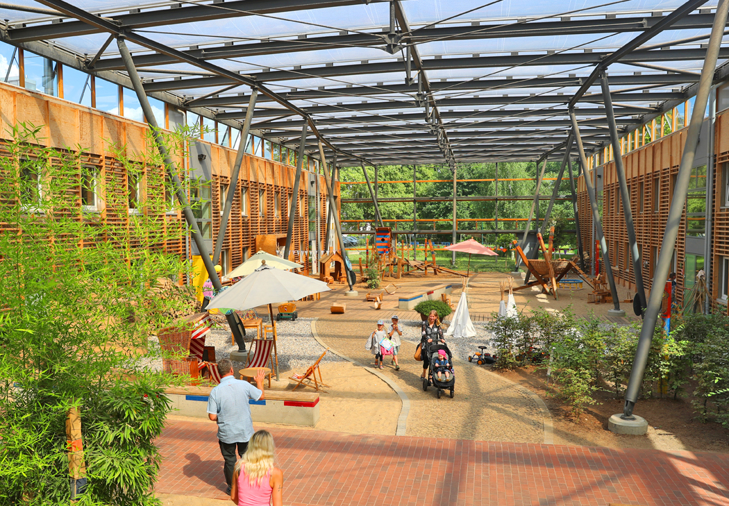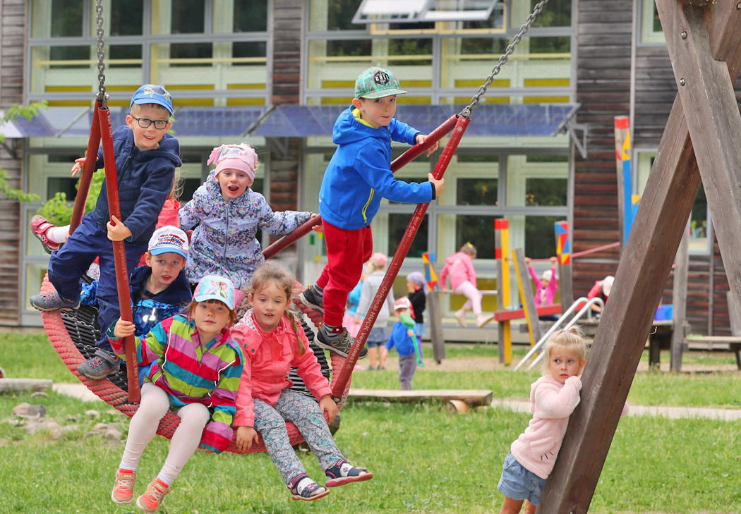 Unsere integrative Kindertagesstätte befindet sich stadtnah im Grünen. Hier kann dank einer modernen, offenen Architektur in hellen freundlichen Räumen gespielt, getöpfert, gekocht, gewerkelt, gemalt und geturnt werden. Der 8.000 qm große, naturnahe Spielplatz, tägliche Lern- und Sportangebote, das bewusste Erleben der Jahreszeiten, spannende Projekte und das wöchentliche Schwimmen lassen die Kinder eine bunte Vielfalt erleben. Es gibt insgesamt elf Gruppen, darunter Krippen-, integrative- und Regelgruppen.